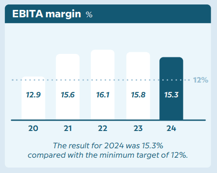 1) Organic growthOEM prioritises organic growth. OEM achieves organic growth by increasing its market shares and expanding the product range that the company offers to its customers. Where OEM is well established, the operations are expected to show growth above the underlying market growth. In markets where OEM has not yet reached a position among the top five players, the aim is to achieve significantly higher growth.