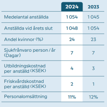 Antalet medarbetare minskade från 1054 till 1048 under 2024.